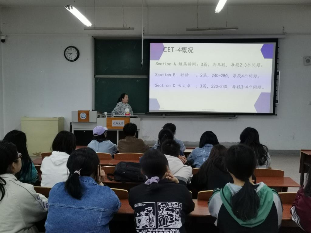 为深入推进党史学习教育,落实好“学党史、悟思想、办实事、开新局”总要求,推动“我为师生办实事”工作落地做实。4月29日晚,yl6776永利集团学生党支部在八教101举办英语四级公益课堂第一讲,学院60余名学生参加公益课堂讲座,主讲由学生党支部英语四级公益课堂团队承担。