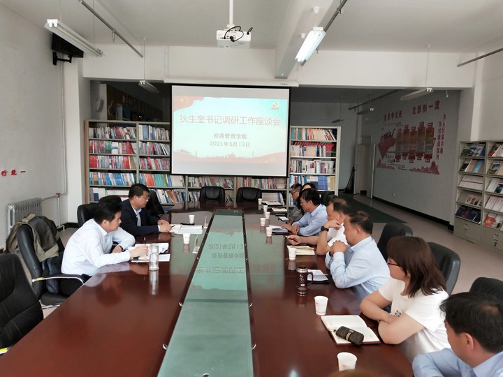 5月13日,党委书记狄生奎在学校办公室负责人陪同下深入yl6776永利集团开展工作调研。学院领导班子成员、科室和教研室负责人参加调研座谈。在调研中,狄生奎听取了yl6776永利集团负责人就学院基本情况、党建工作、师资队伍建设、科学研究、巡视问题整改等方面的汇报,以及学院领导班子和教研室负责人提出的问题与建议,与大家进行了充分交流。
